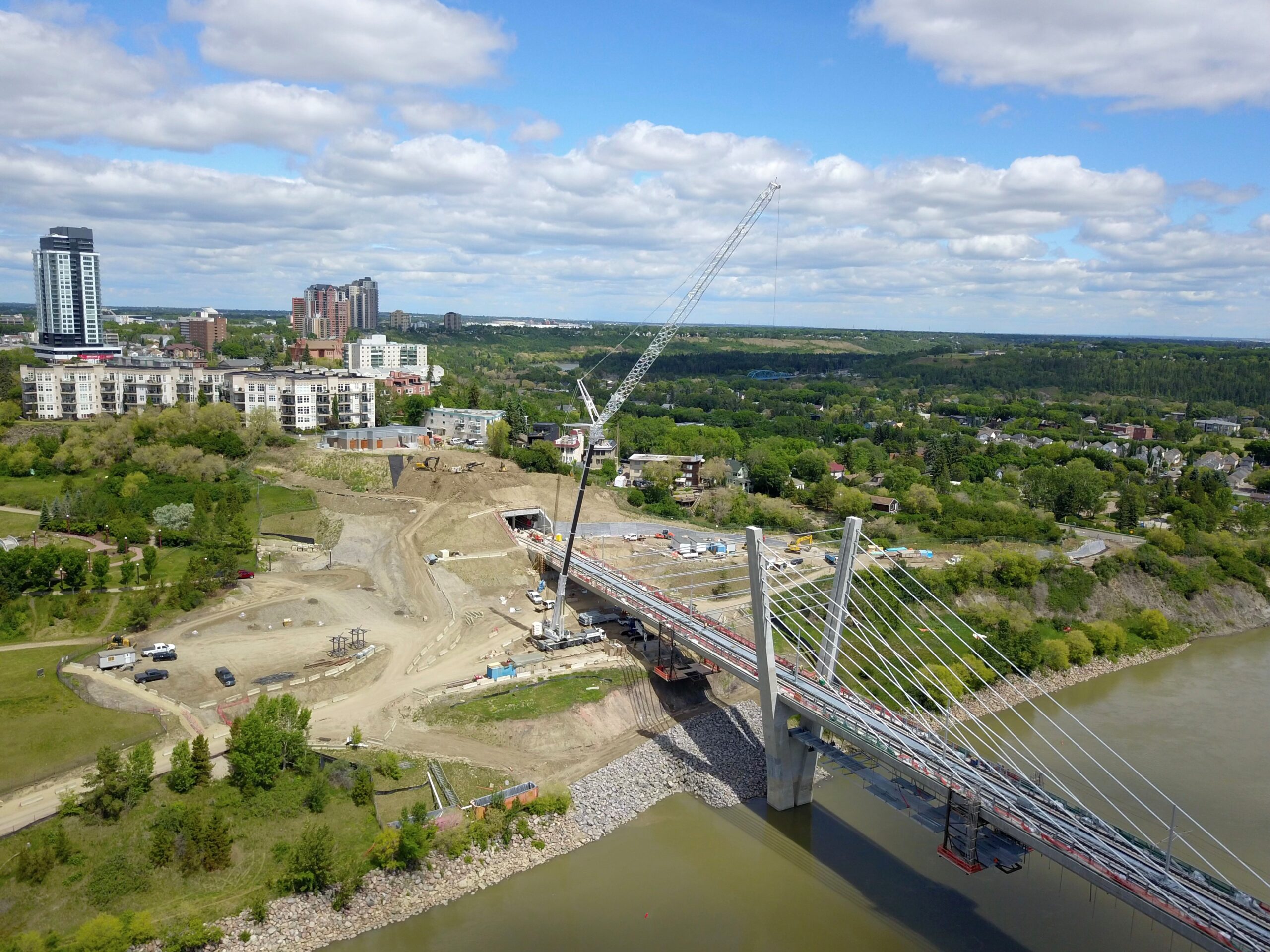 Myshak Crane & Rigging Ltd. (MCR) was engaged to support finishing operations on the Marigold Light Rail Transit (LRT) bridge, specifically to assist crews in accessing and completing detailed work on the upper sections of the bridge piers. These final construction stages were critical to the completion of the structure and required a reliable, safe method for personnel to reach elevated work areas that were otherwise inaccessible using conventional means.