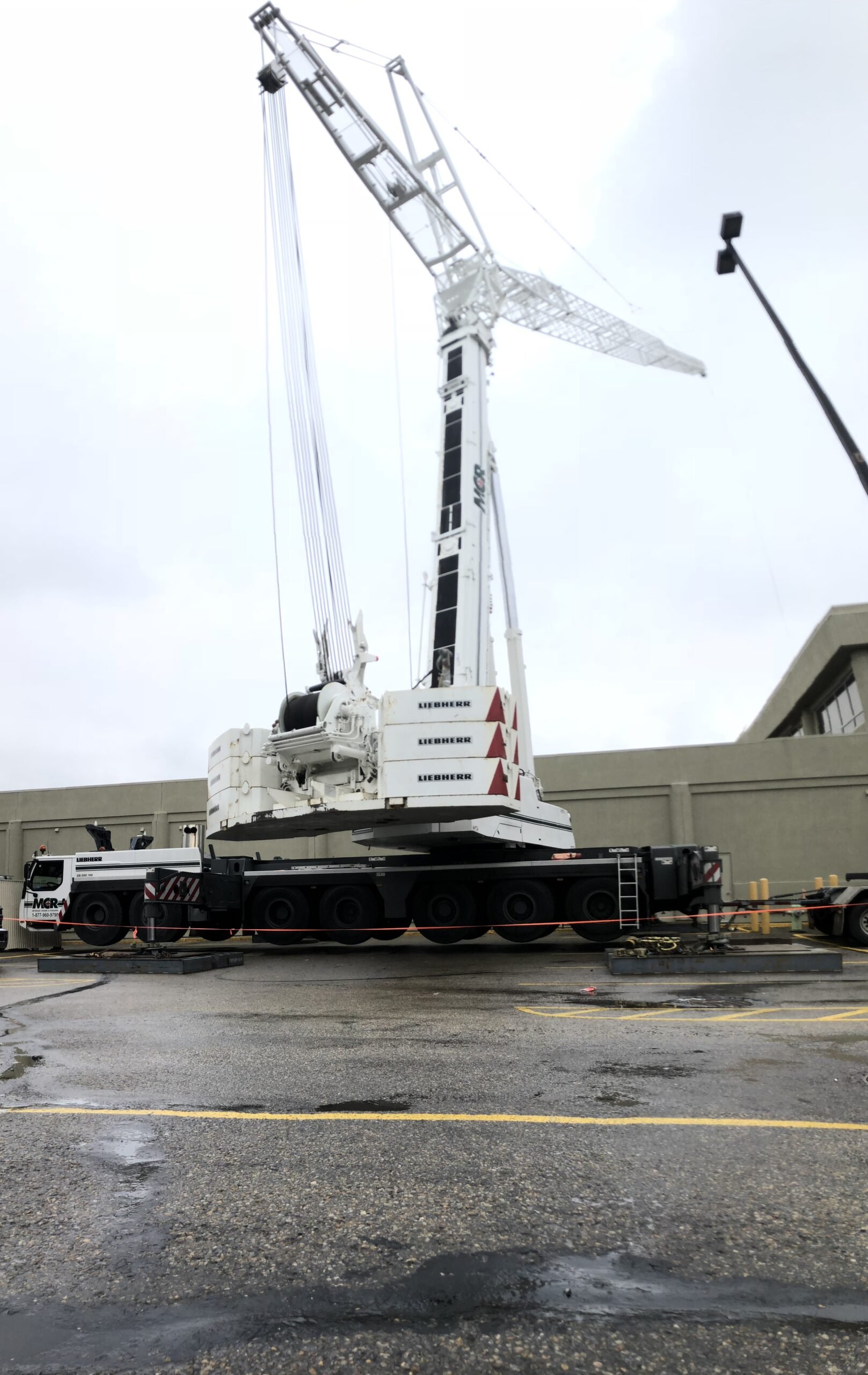 To address this limitation, Myshak Crane & Rigging Ltd. (MCR) implemented a detailed coordination plan in collaboration with facility management. Delivery schedules were reviewed and accommodated, and crane assembly, specifically the installation of the luffing jib, was strategically scheduled within a narrow 1.5 hour window. This approach ensured that construction activities continued to progress without disrupting the facility’s logistics or productivity.