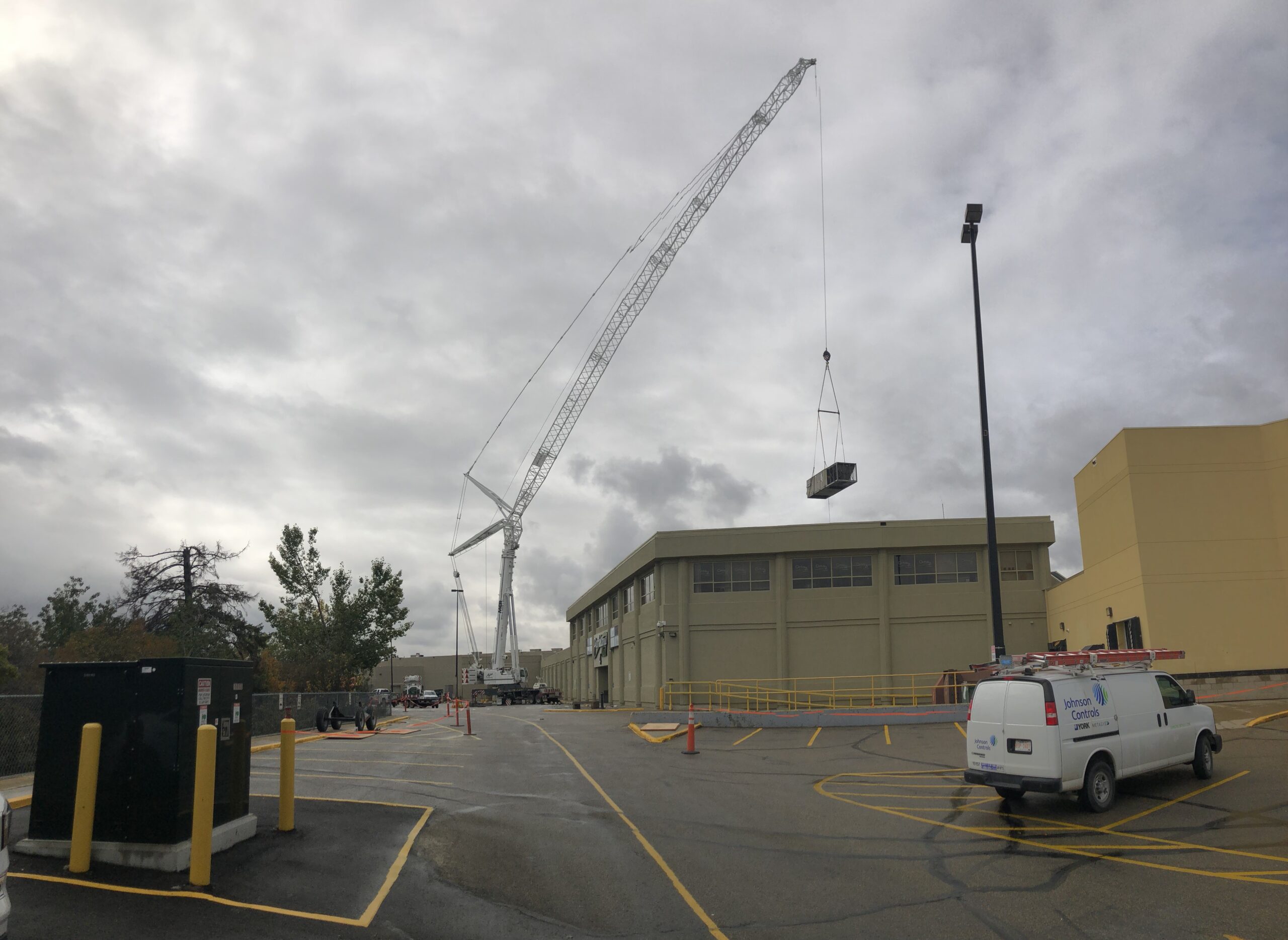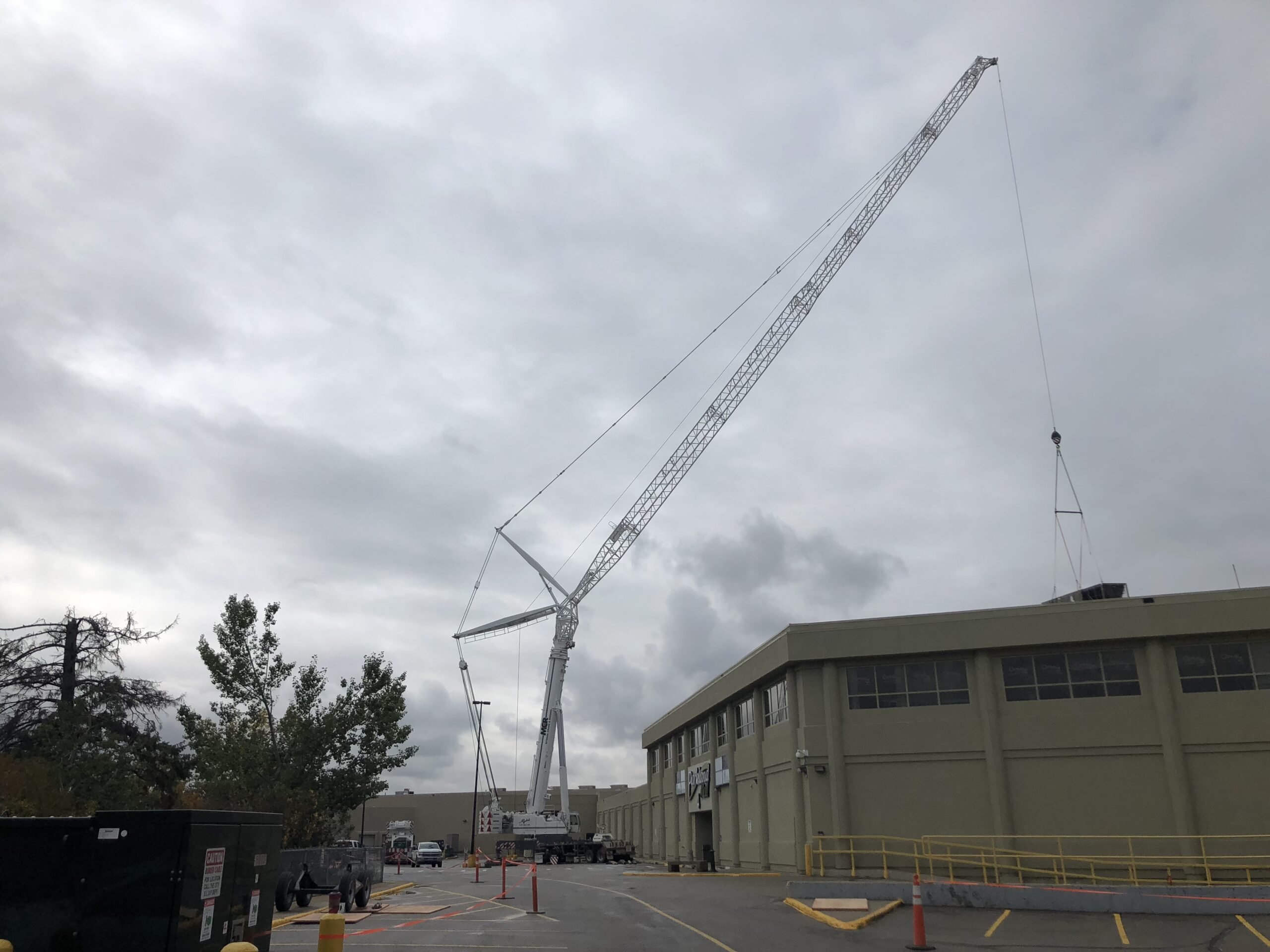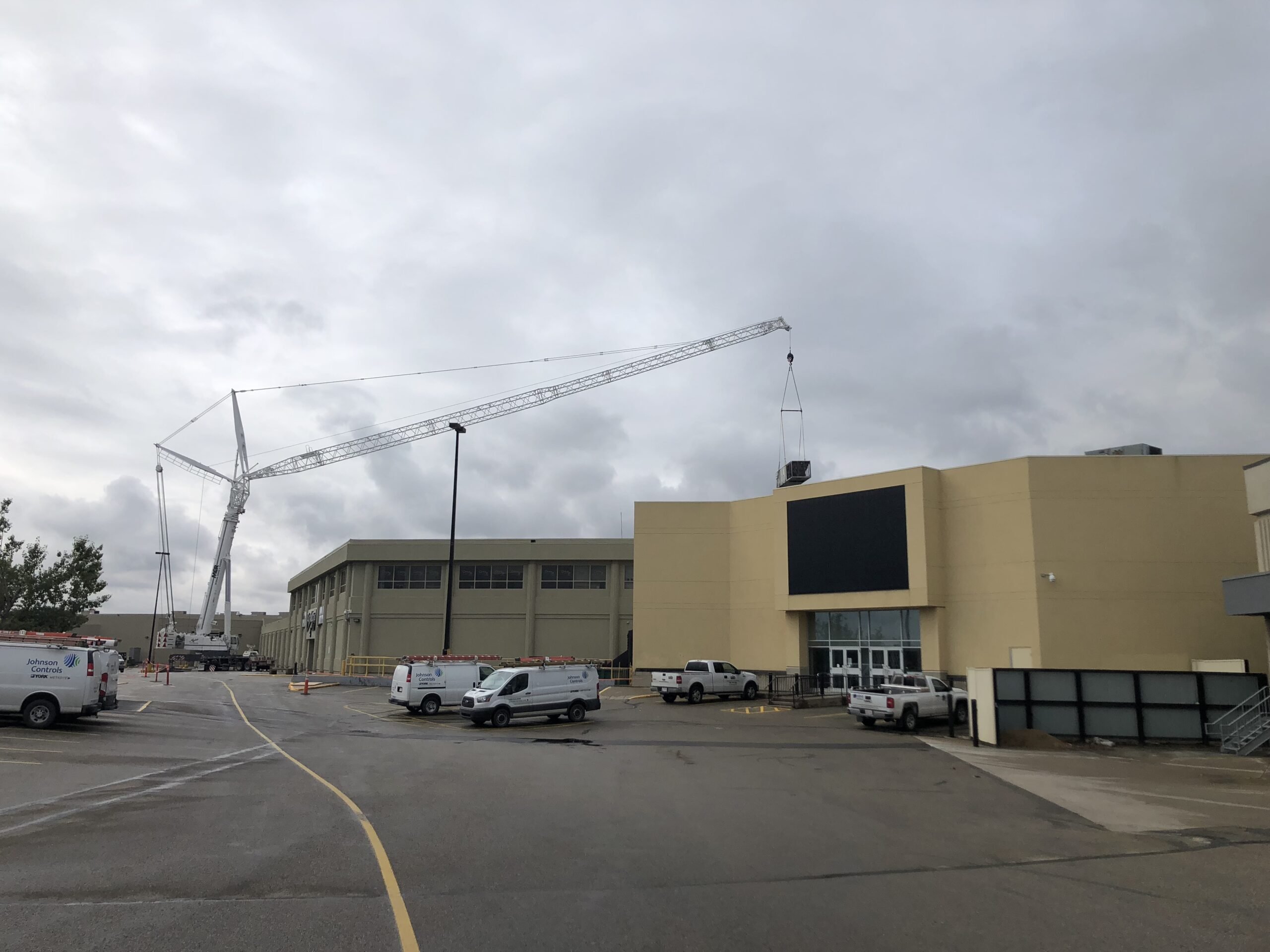 The Parkland Mall required the removal and replacement of a rooftop unit (RTU) as part of a scheduled mechanical system upgrade. The scope of work involved the precise removal of the existing RTU, the placement and installation of a new unit, and the responsible disposal and recycling of the decommissioned equipment. Due to the size and location of where the unit needed to be removed and replaced, a high-capacity crane was necessary to execute the lifts safely and within the constraints of the project site.