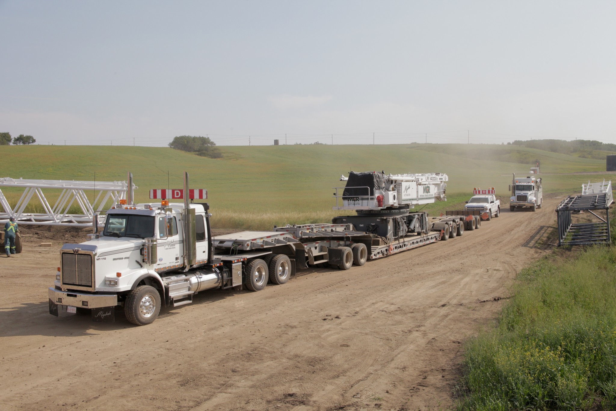 Myshak Crane & Rigging was requested to build 9 towers in 2 months time in southern Alberta.