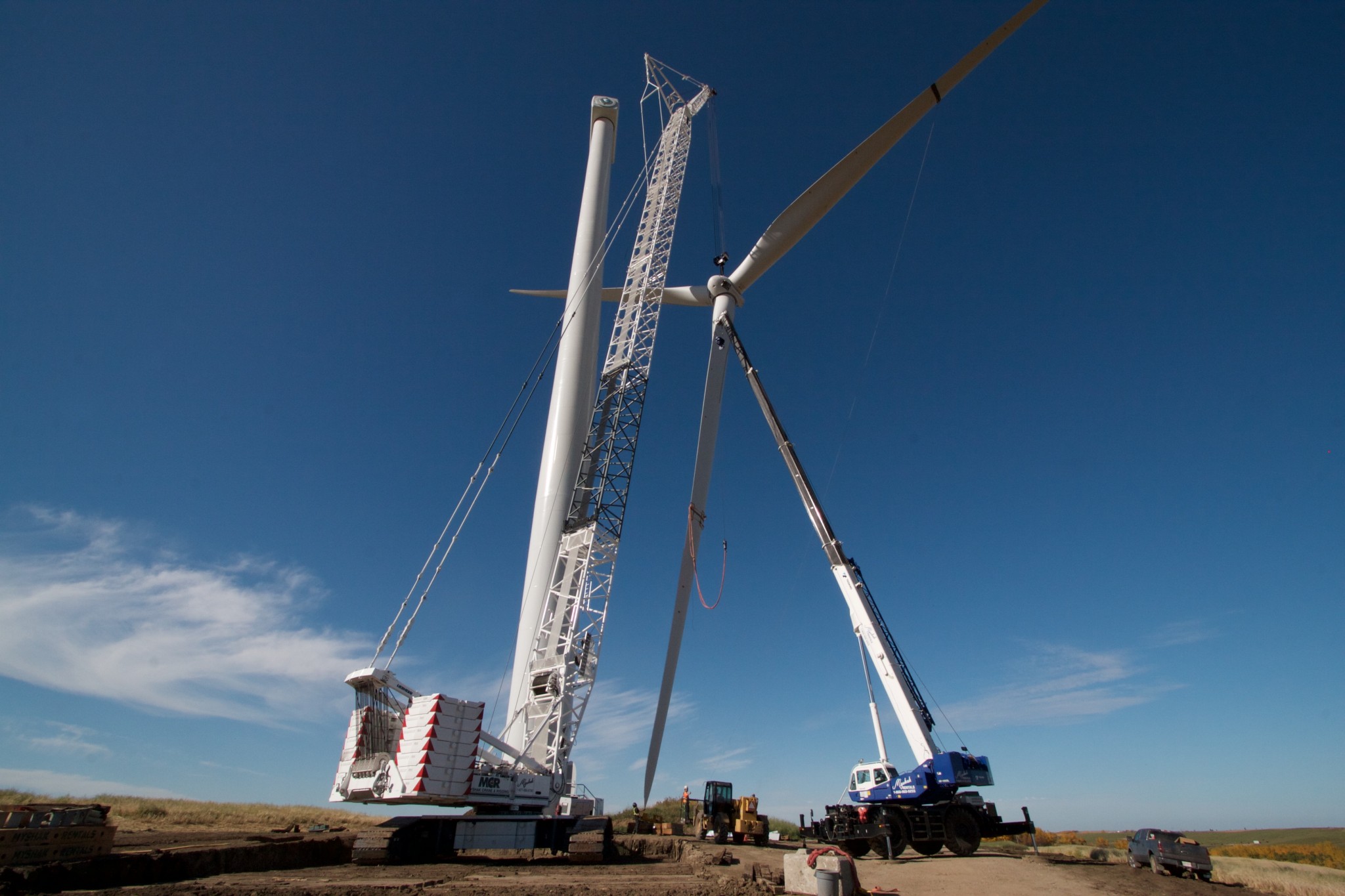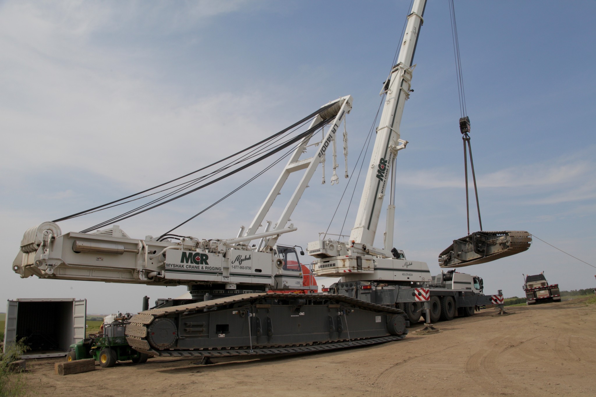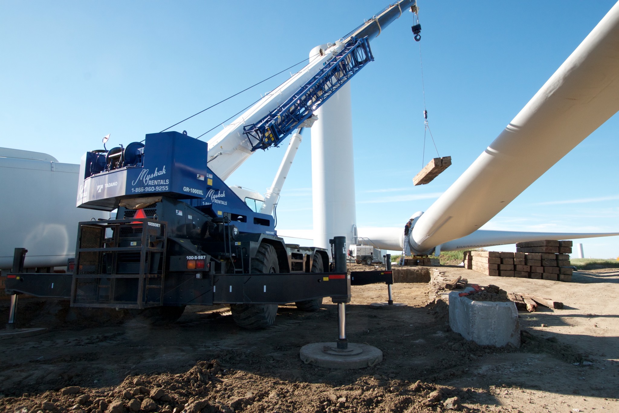 Myshak Crane & Rigging was requested to build 9 towers in 2 months time in southern Alberta. The challenge was the height of turbines being built and the weight of the wind turbine itself. Lots of hills and wind speeds from 0-25mph made for a tough time to assemble the crane and an even shorter timeframe to lift the turbines into place. After the first two turbines we had to move the crane 4 times to complete the remainder of lifts.