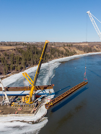From bridges and roadways to transit systems and utilities, infrastructure projects rely on experienced planning, safety-first commitments, and powerful equipment. Myshak supports the infrastructure sector with integrated lifting, rigging, hauling, and rental solutions that ensure timely delivery and safe installation of critical components. Our team is equipped to handle complex, large-scale public and private projects across Western Canada.