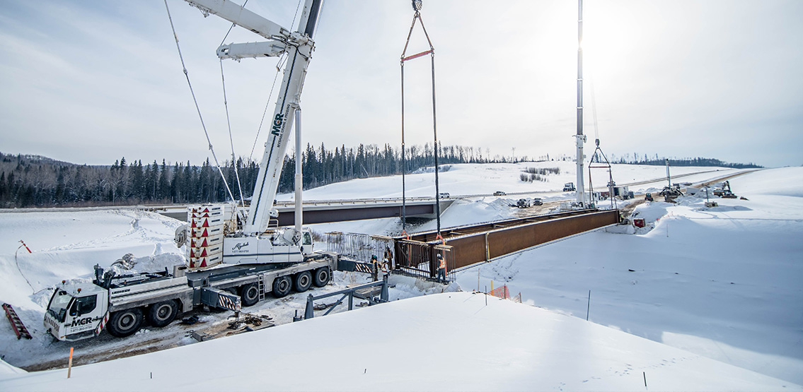 From bridges and roadways to transit systems and utilities, infrastructure projects rely on experienced planning, safety-first commitments, and powerful equipment. Myshak supports the infrastructure sector with integrated lifting, rigging, hauling, and rental solutions that ensure timely delivery and safe installation of critical components. Our team is equipped to handle complex, large-scale public and private projects across Western Canada.